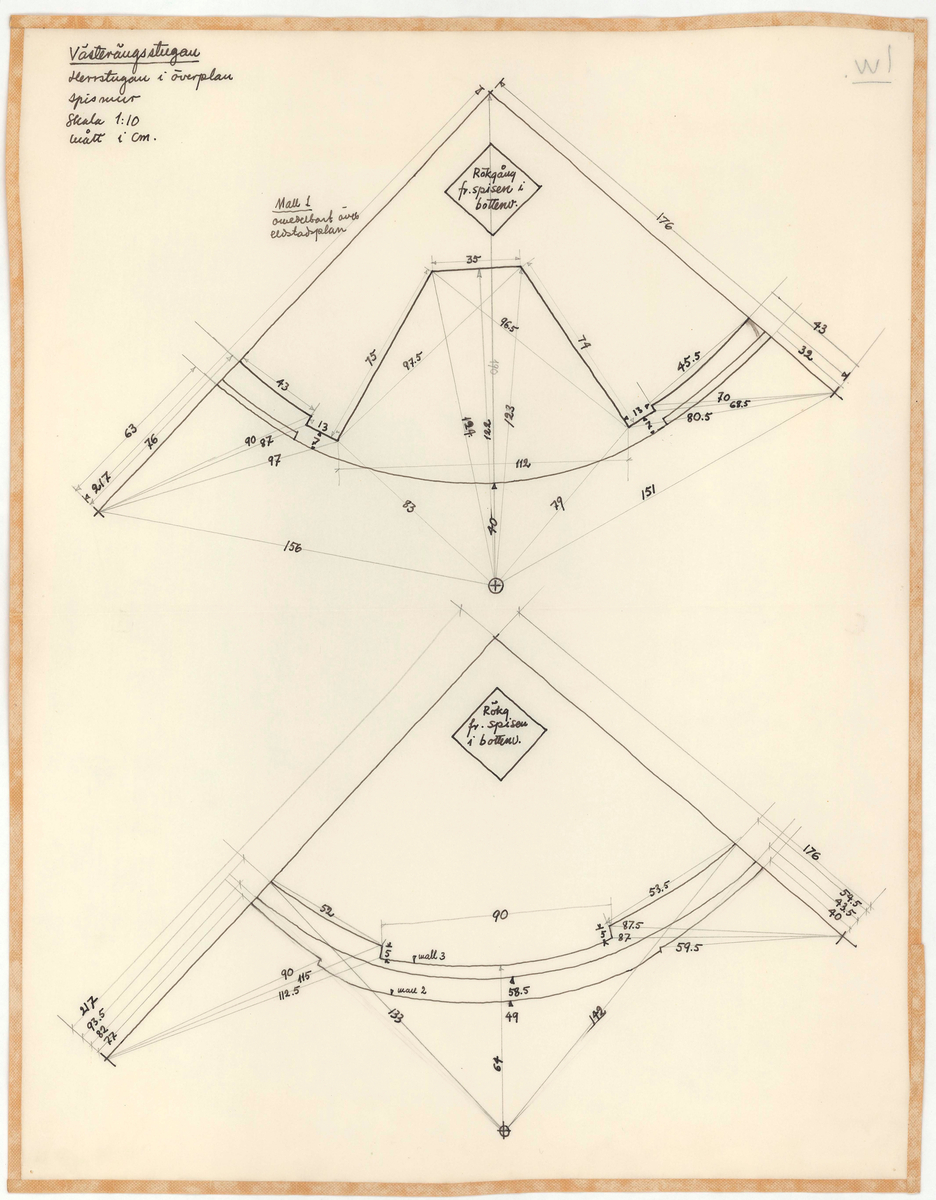 Titel: Delsbogården. Uppmätningsritning. Västerängsstugan. Herrstugan på övervåningen. Spismur.