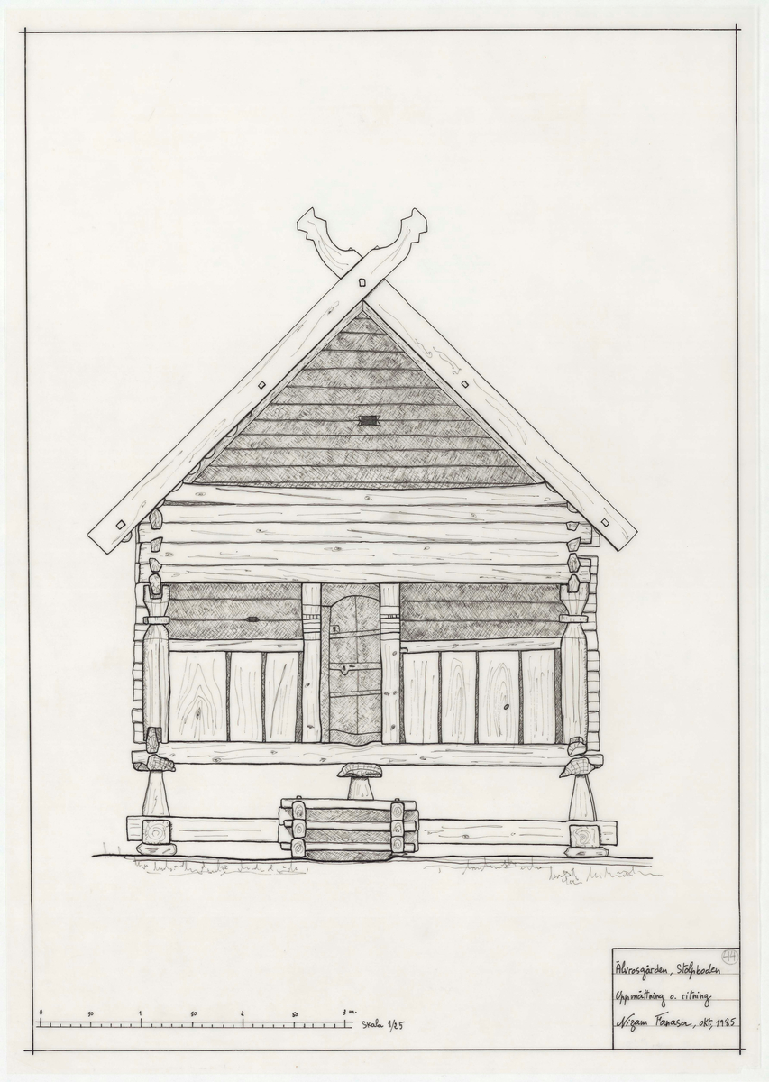 Titel: Älvrosgården. Stolpboden. Fasadritning.