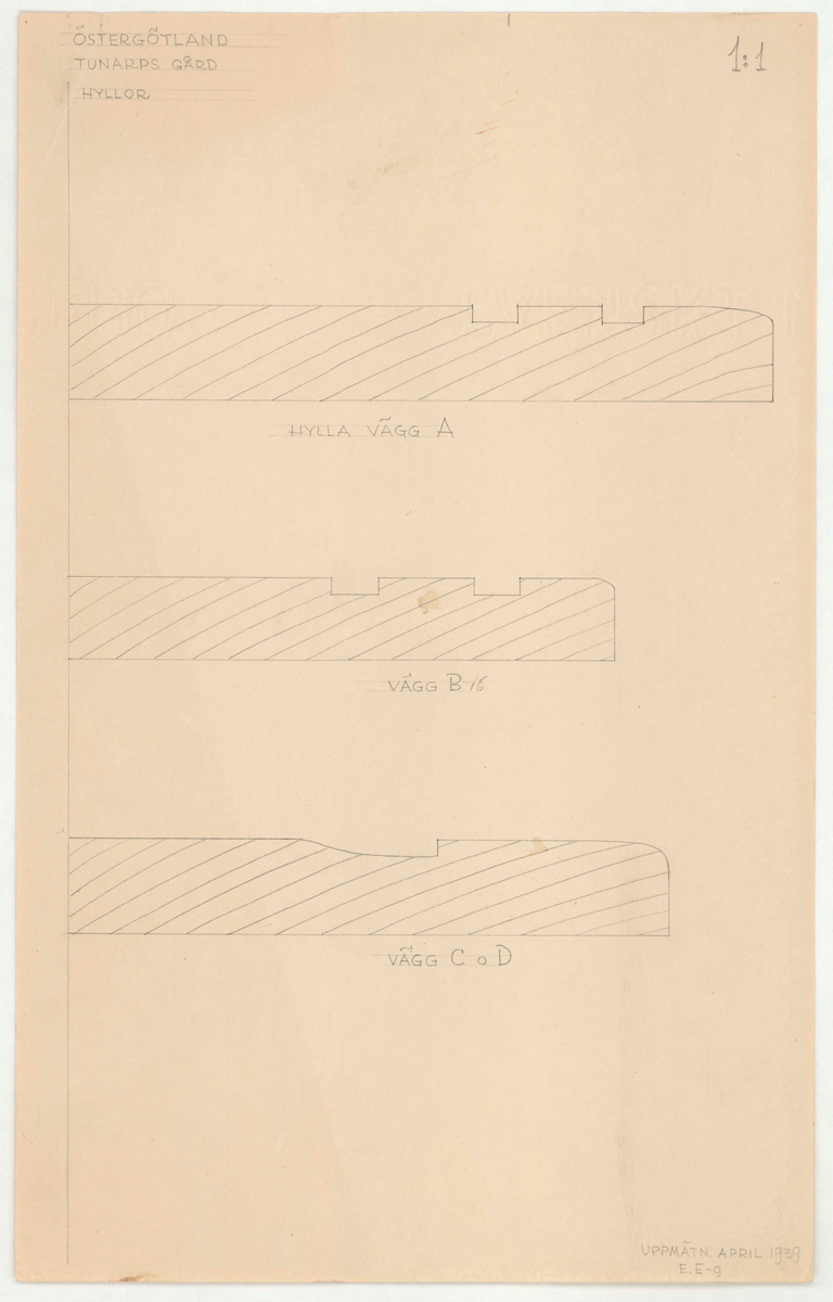 Titel: Skogaholms herrgård. Detaljritning. HYLLOR. Skala 1:1