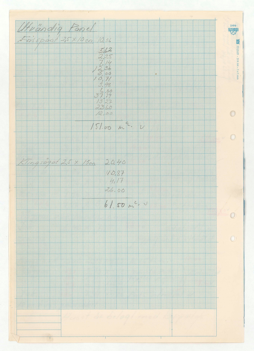 Titel: Kronbergs ateljé. Lista. Uppgifter om utvändig fasspånt.
