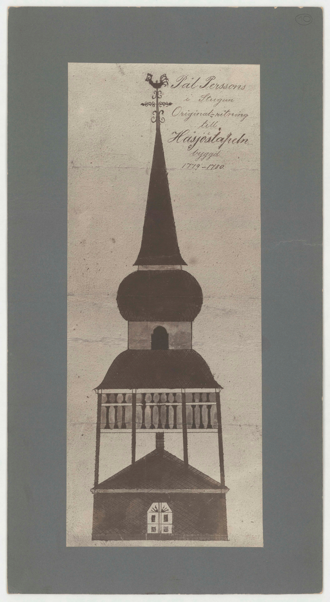 Titel: Håsjöstapeln. Fasadritning. Pål Perssons i Stugum originalritning till Håsjöstapeln byggd 1779-1780.