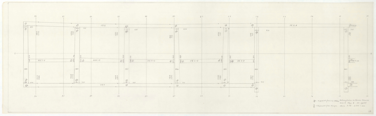 Titel: Skånegården. Västra loglängan. Detaljritning. Hus K. Vägg B. Skala 1:10