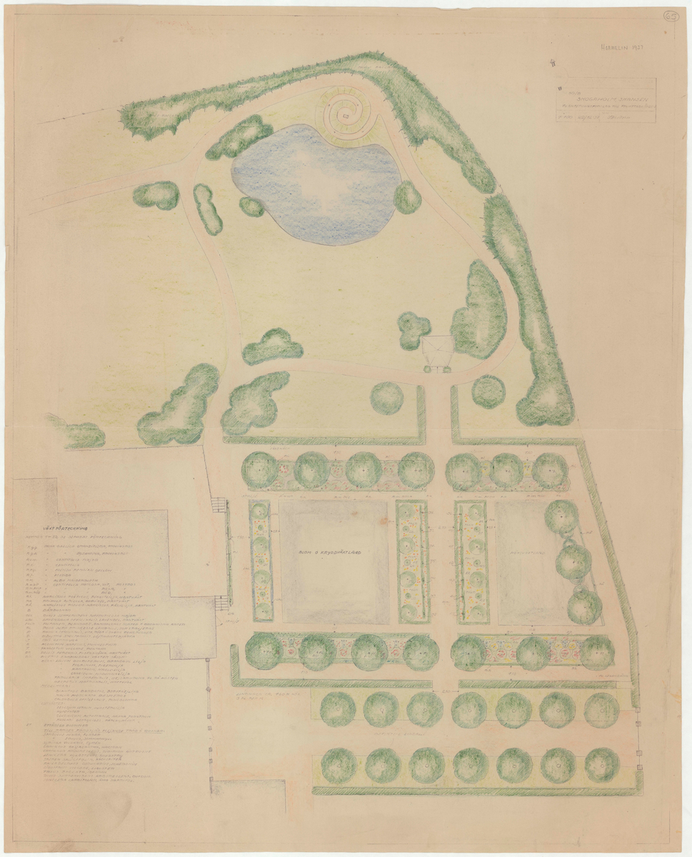 Titel: Skogaholms herrgård. Situationsplan. Planteringsförslag till fruktträdgård. Skala 1:100