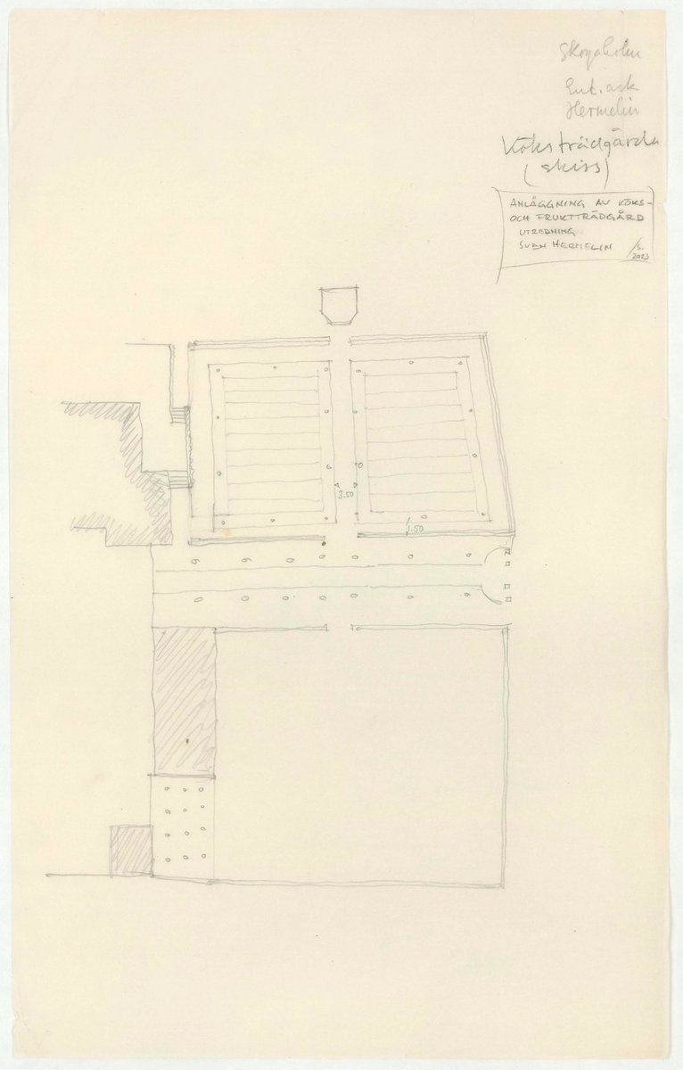 Titel: Skogaholms herrgård. Situationsplan/skiss. ANLÄGGNING AV KÖKS- OCH FRUKTTRÄDGÅRD. UTREDNING: