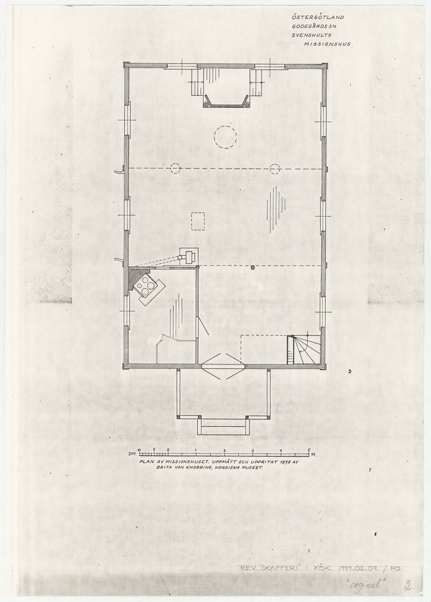 PLAN AV MISSIONSHUSET. UPPMÄTT OCH UPPRITAT 1978 AV BRITA VON KNORRING, NORDISKA MUSEET.