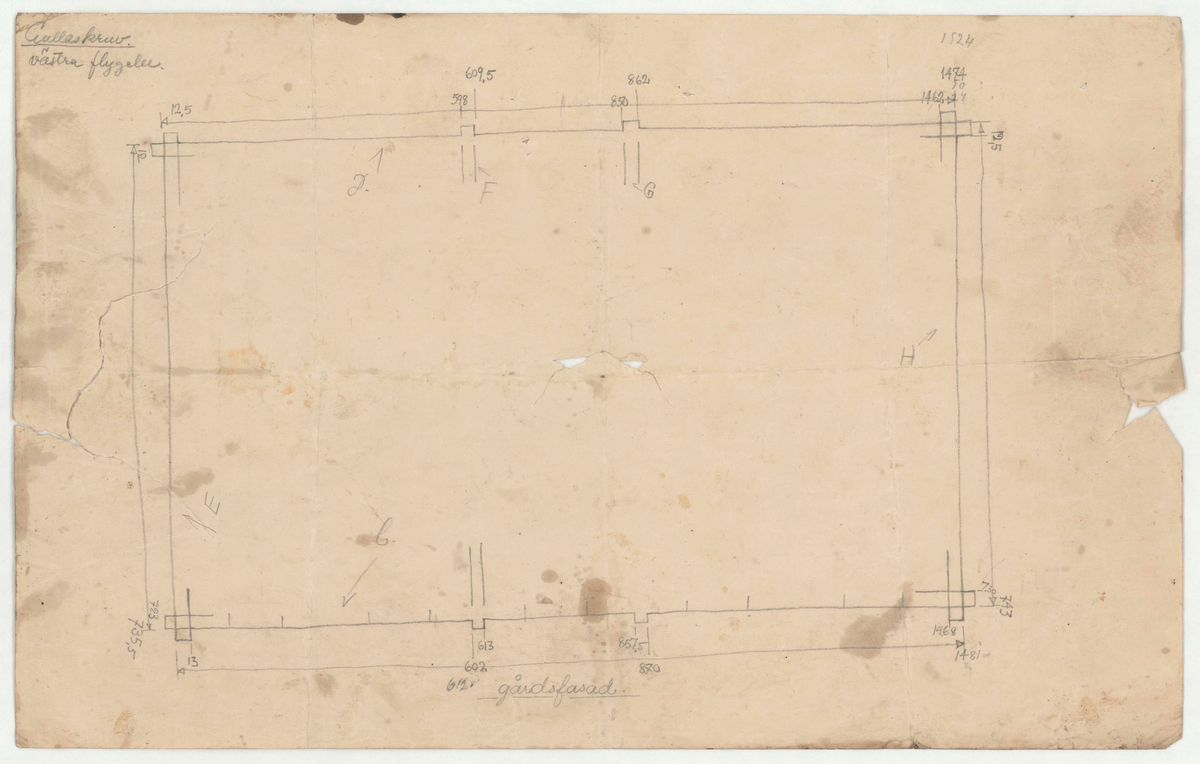 Titel: Skogaholms herrgård. Biblioteksflygeln. Detaljritning. Gullaskruv. Västra flygeln.