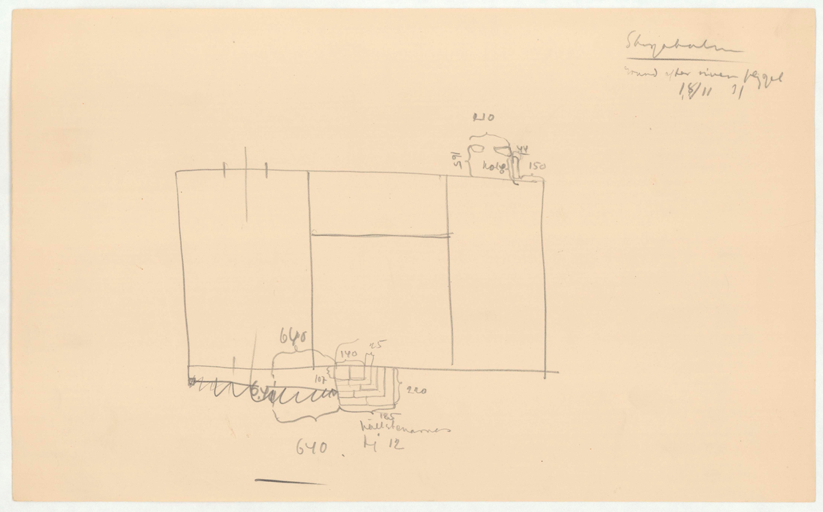 Titel: Skogaholms herrgård. Biblioteksflygeln. Planritning. Grund efter riven flygel.