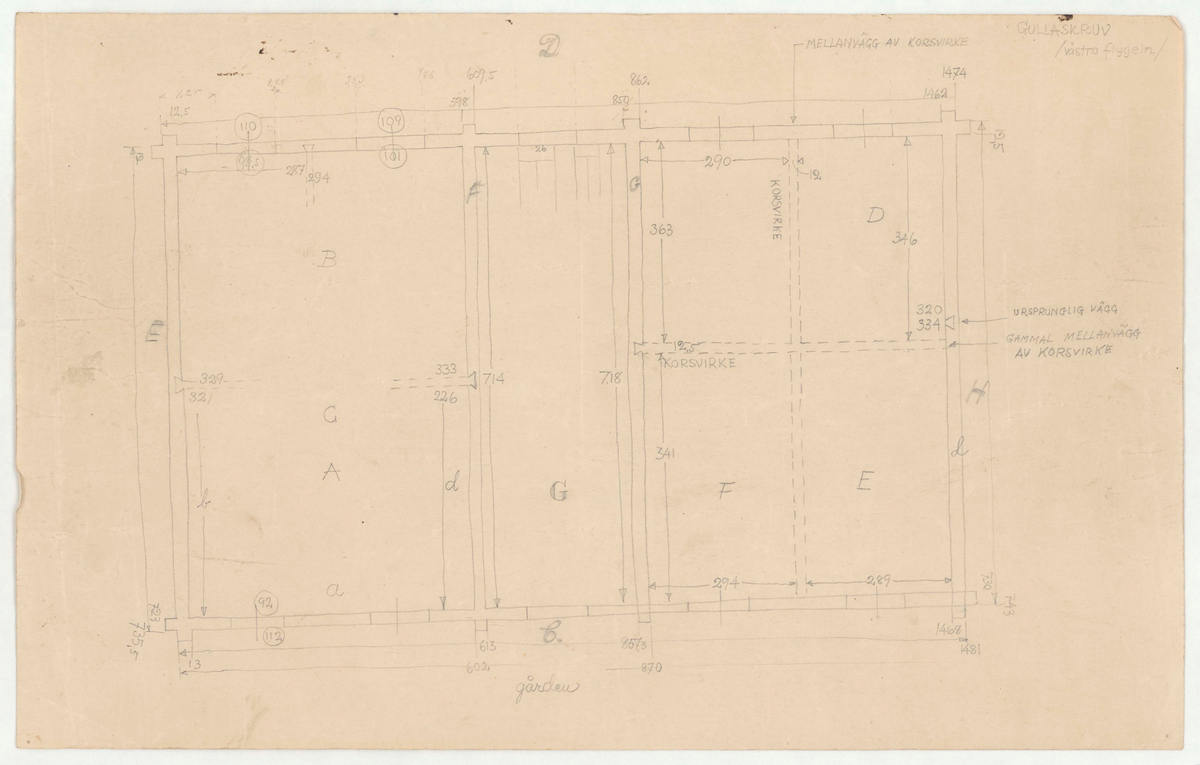 Titel: Skogaholms herrgård. Biblioteksflygeln. Planritning. GULLASKRUV. Västra flygeln.