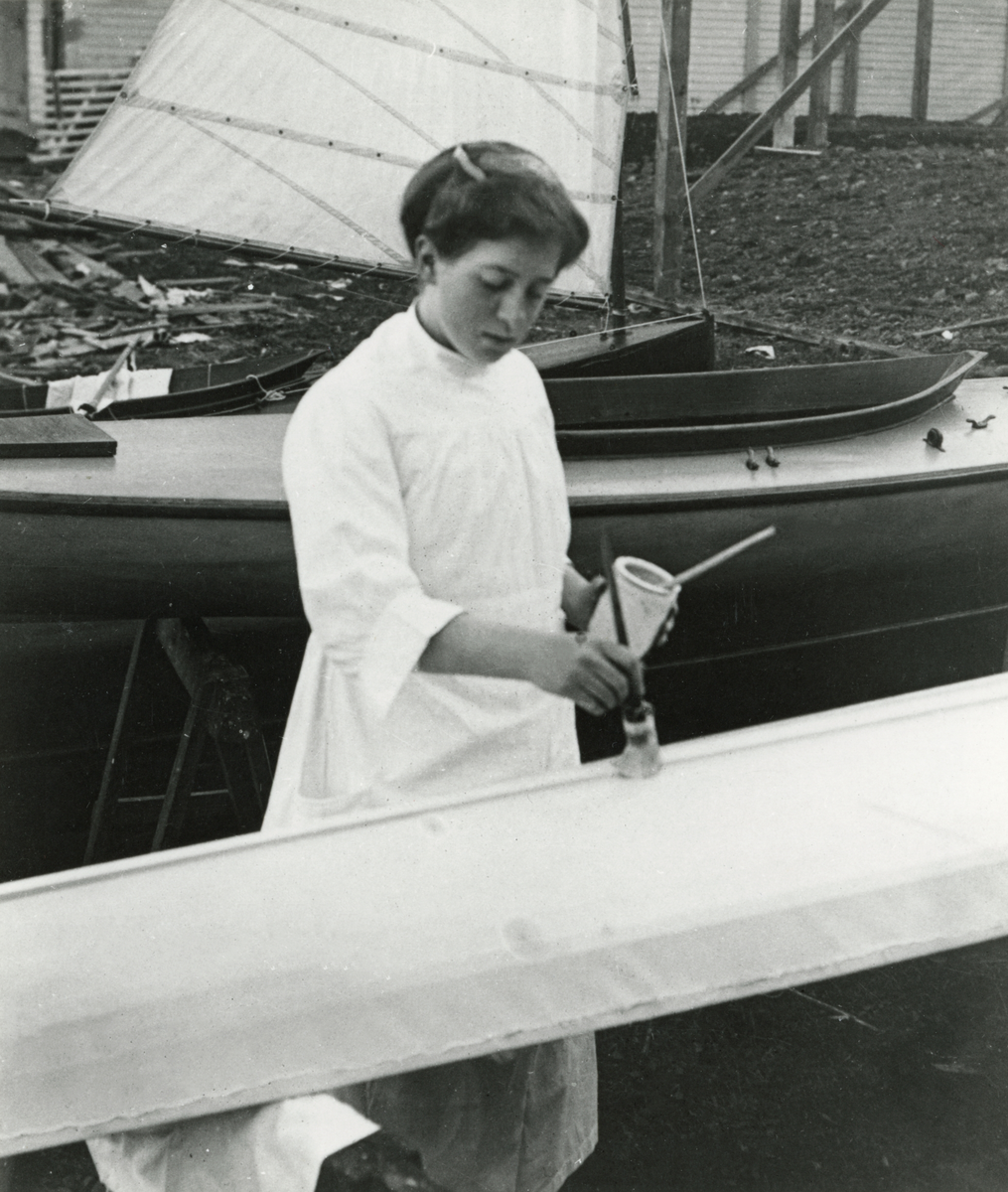 Greta Atler målar sin KAYA vid Eki:s gamla klubbhus våren 1912.
