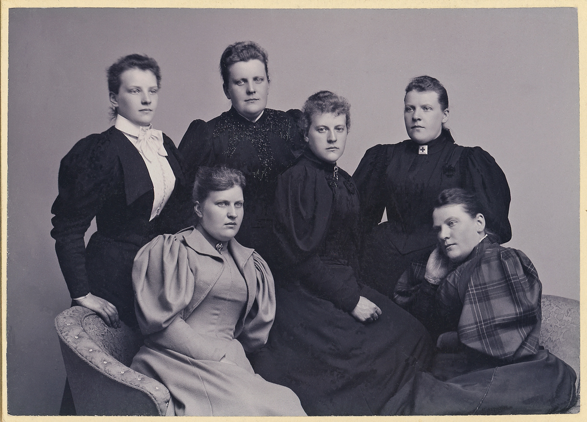 De sex systrarna Eksandh från Slätthög, hos fotografen.