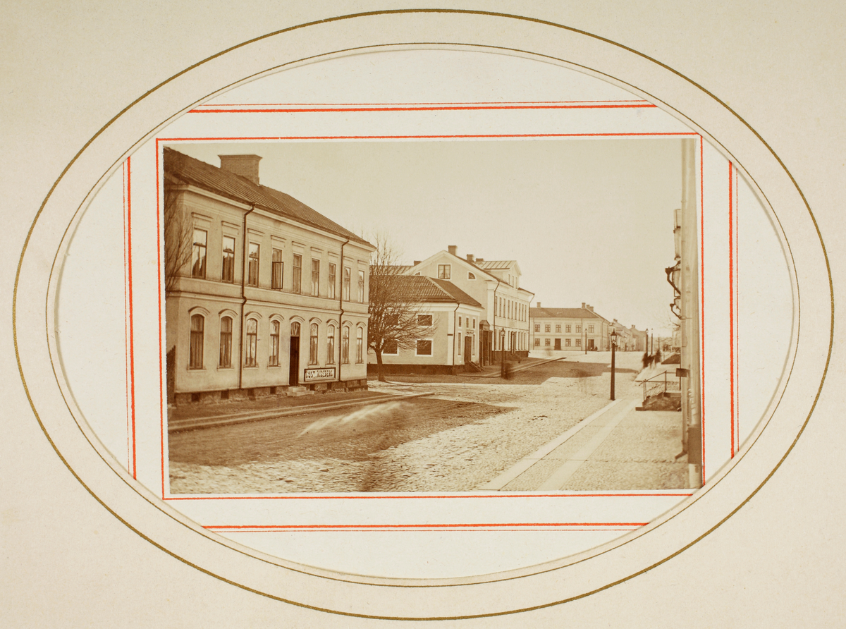 längs Storgatan mot stortorget. I bakgrunden syns också ett hus i kvarteret Unaman (senare P.N. Perssons hörna).