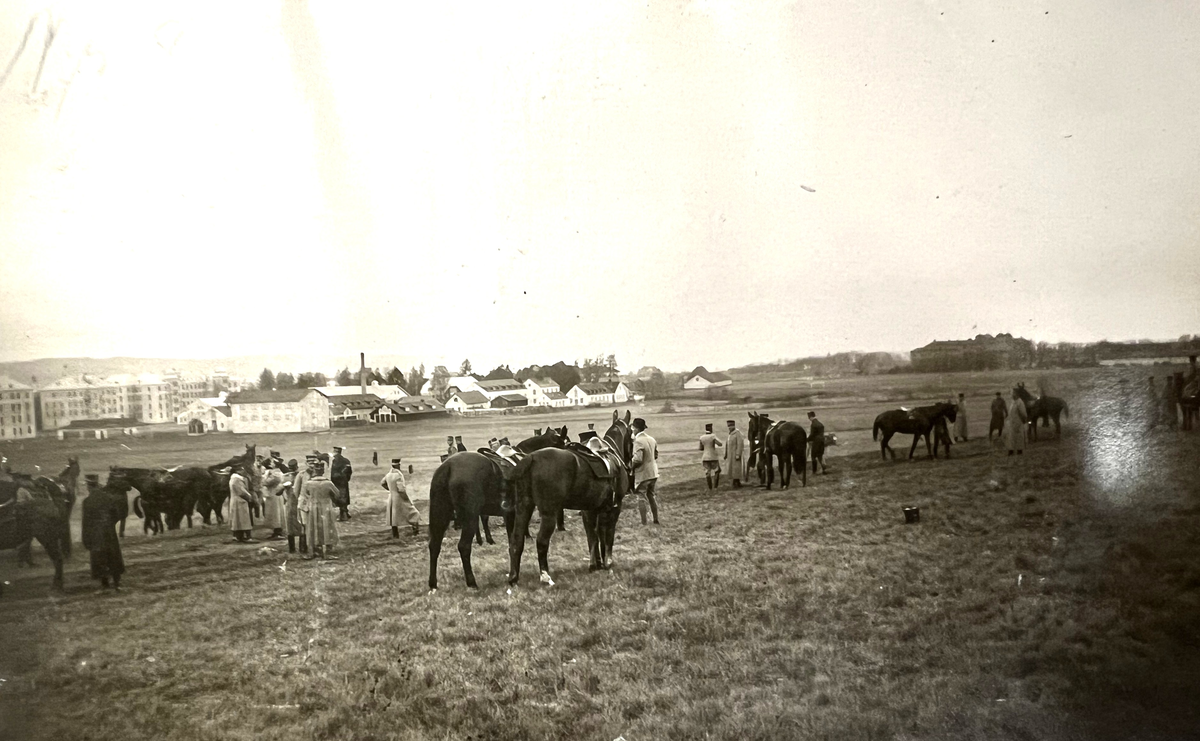 Smålands artilleriregemente, A 6. Hubertusjakt på övningsfältet. Prisutdelning. Foto från år 1920.