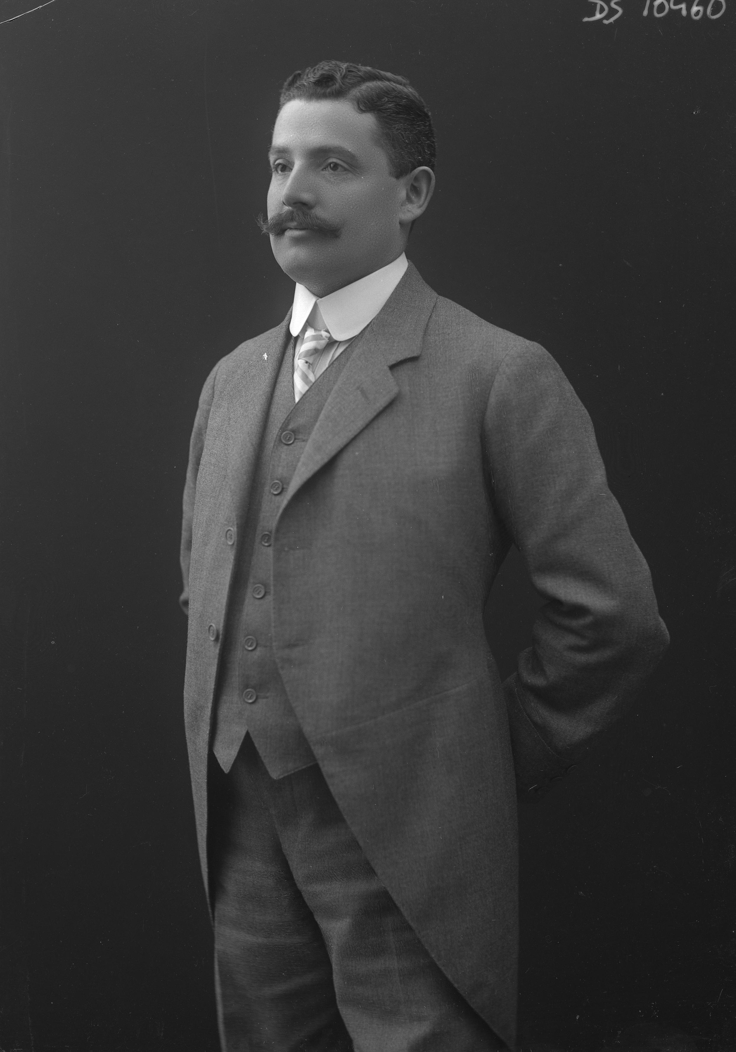 Beskrivning: Porträtt i helfigur av skofabrikör David Schanzer.