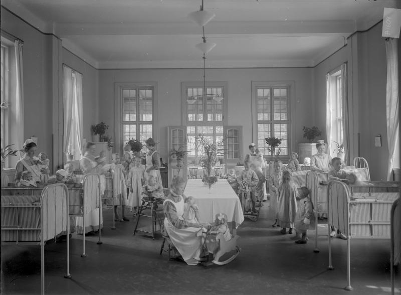Lund, sjukhusinteriör. Gamla Barnsjukhuset, Lunds Lasarettet, omkring 1910.