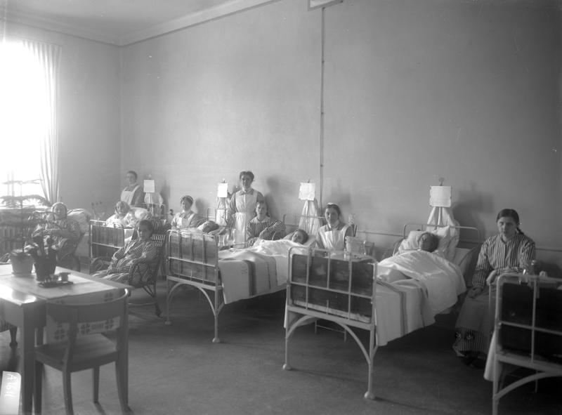 Lund, sjukhusinteriör. Sjukhussal på lasarettet, omkring 1910.