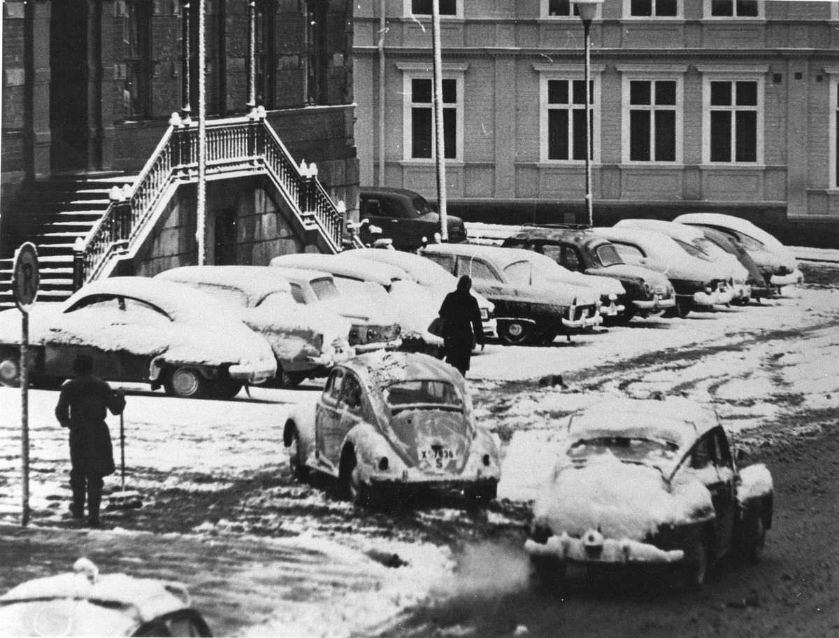Rådhustorget, Söderhamn, i snölask. Foto 17 november 1962.
