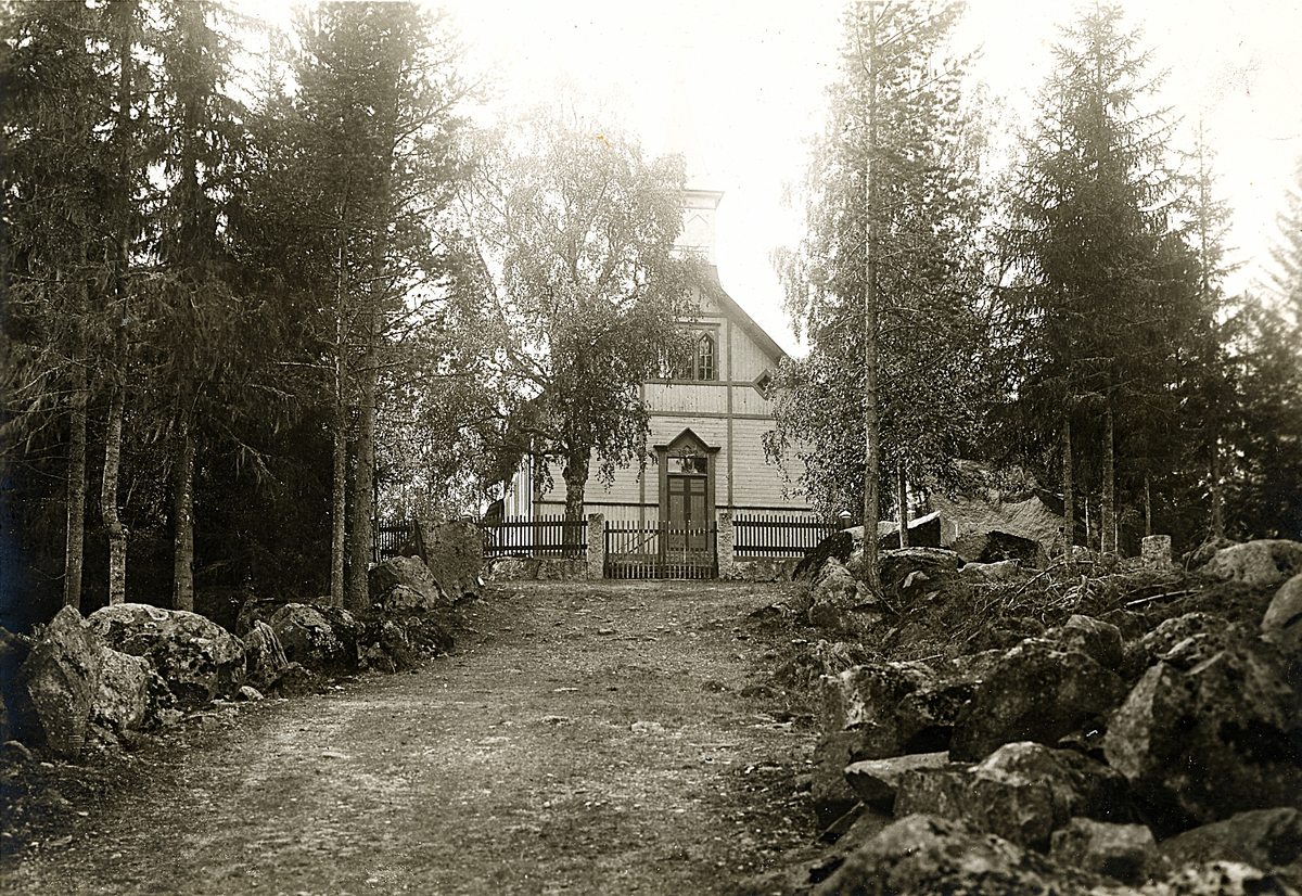 Bilden verkar visa en äldre kyrka eller kapell i en lantlig miljö, troligen någonstans i Bollnäs trakten.