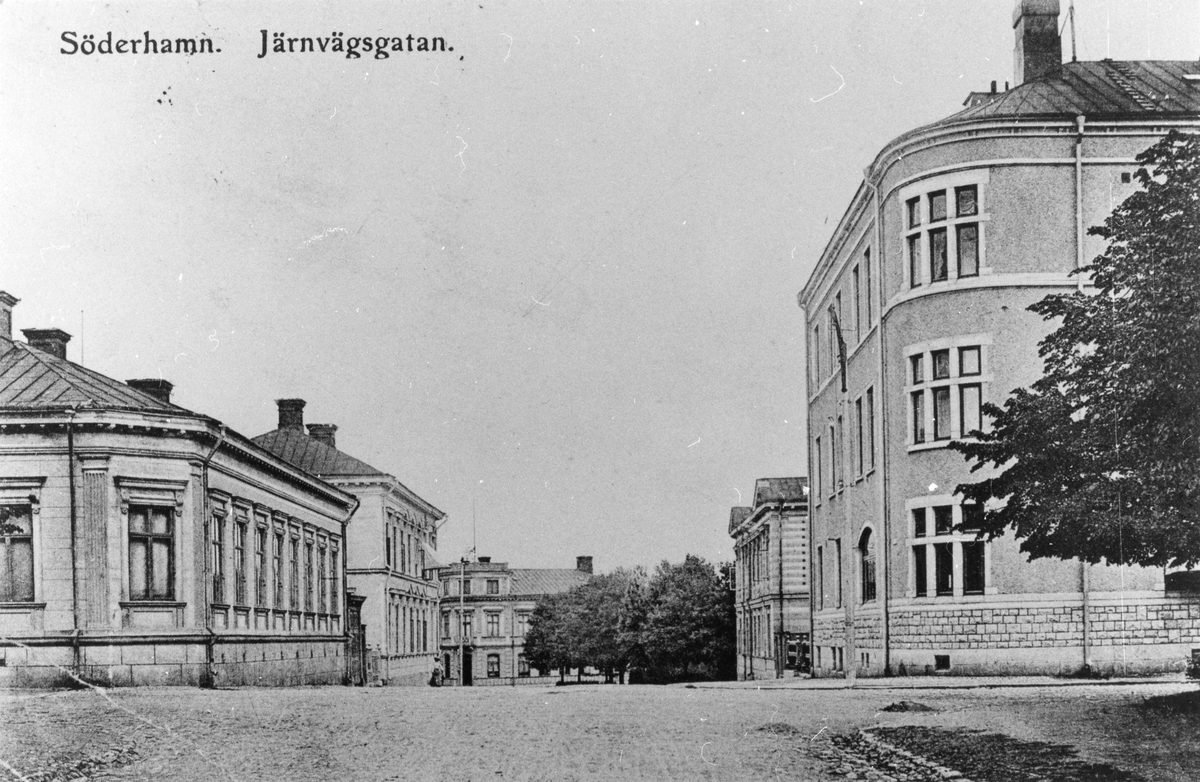 Prästgårdsgatan österut från Rådhusparken i Söderhamn. Foto i början av 1900-talet.