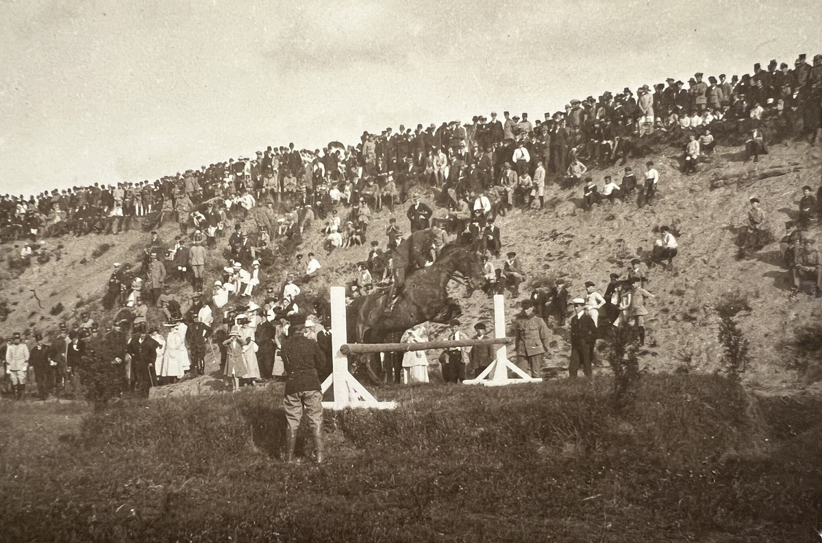 Smålands artilleriregemente, A 6. Regementets 25-årsjubileum. Hästhoppning. Foto från år 1920.