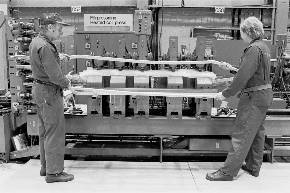 Micarex-line. Härvverkstaden. Förpressningsmaskin (Micafil).