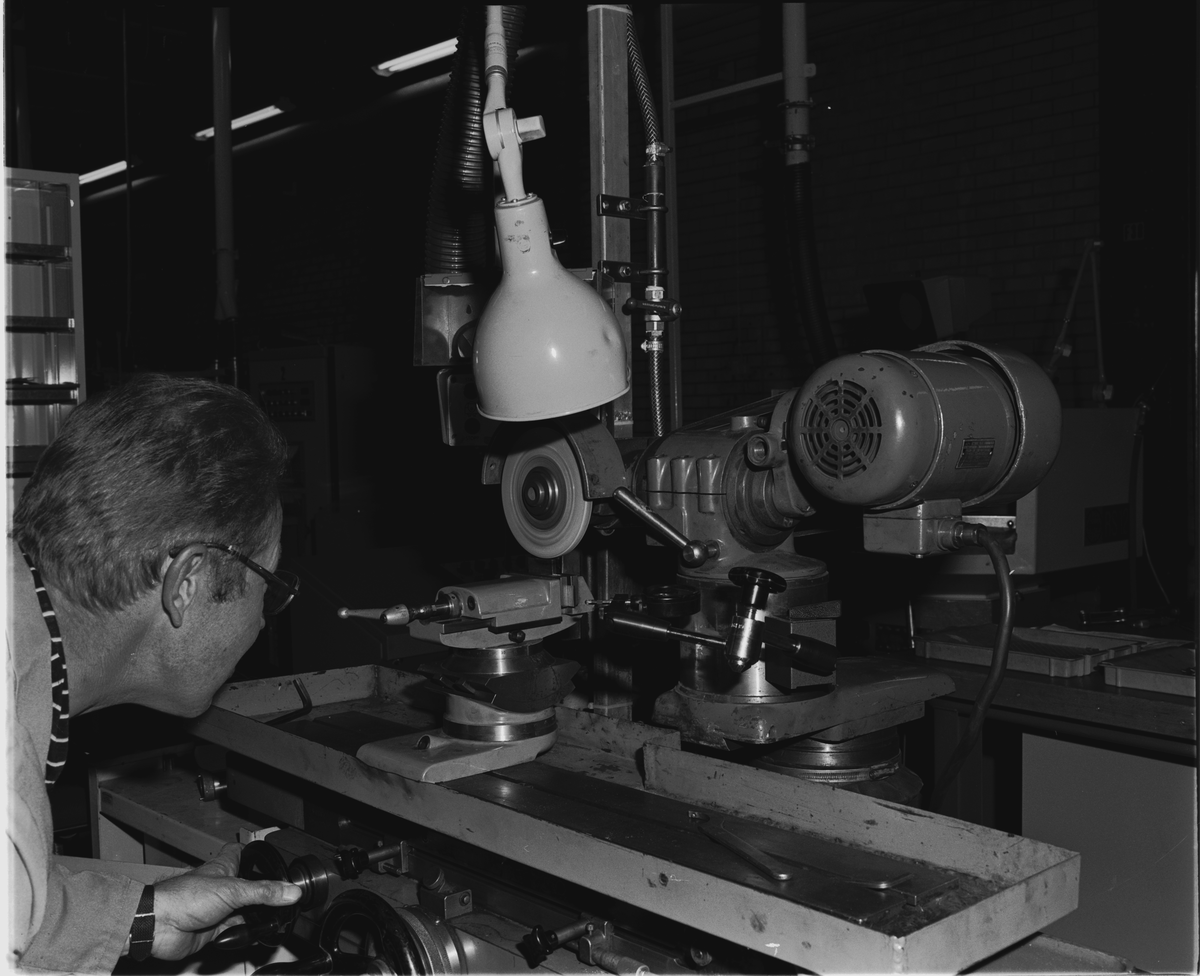 SLIPNING AV SPECIALSKÄR. Bilden visar ett moment vid slipning av specialskär i en standardmaskin där uppsättning sker i skruvstycke.