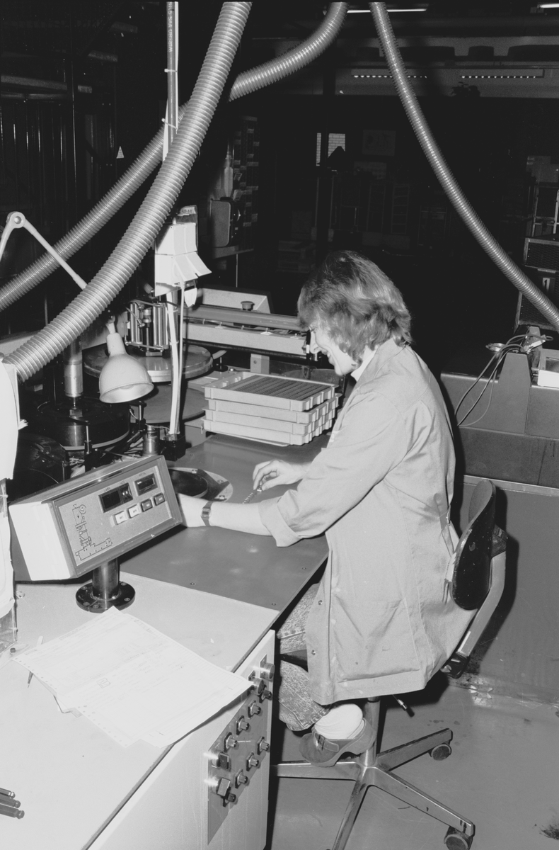 BLÄCKSTRÅLEMÄRKNING: Skären placeras manuellt på ett roterande inmatningsbord.
