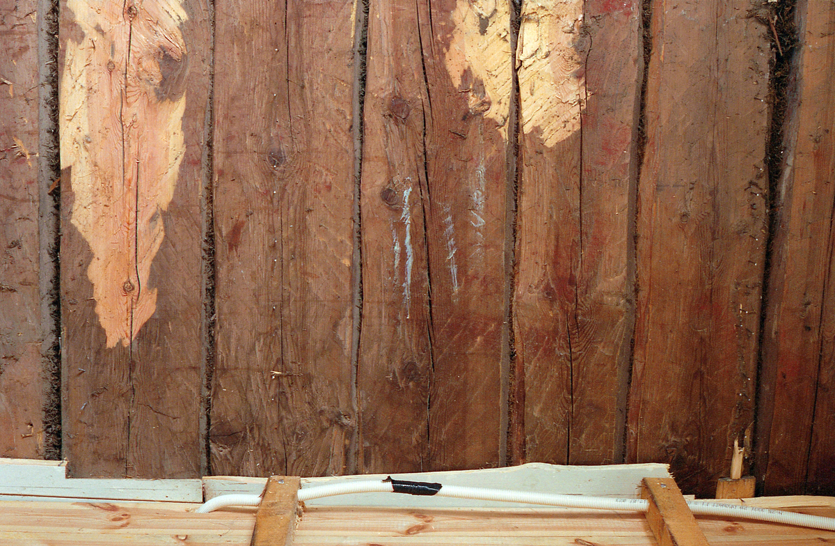 Töftedals kyrka. Golv i vapenhus under renovering.