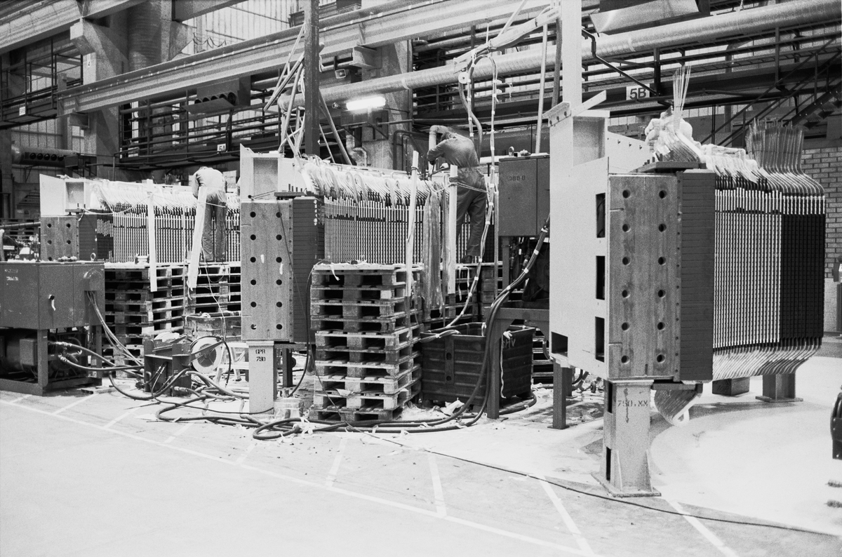 Plåtläggning-lindning. Hall 5. Lindning statordelar.