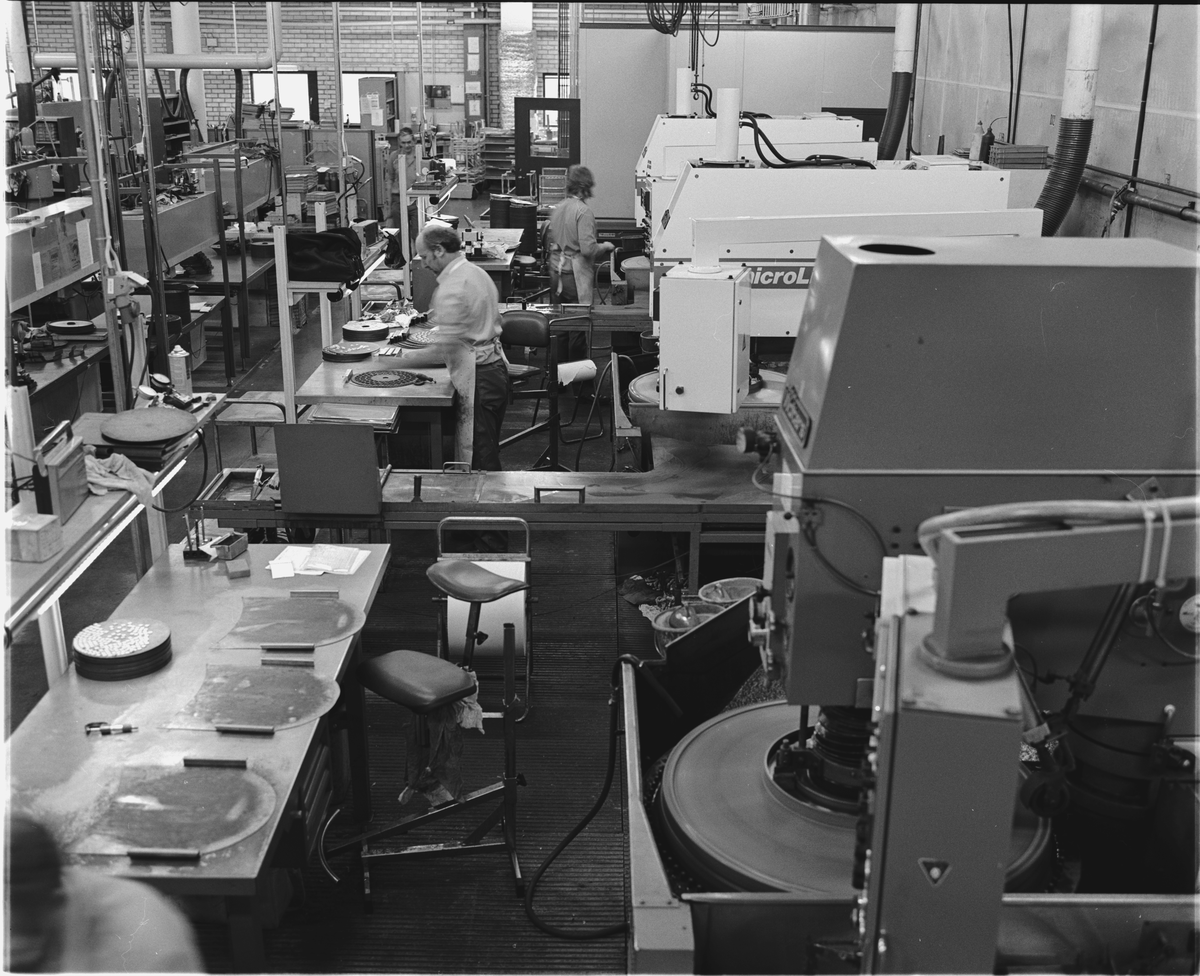 Slipning av frässkär vid Sandvik Coromant AB, Gimo. Maskiner för planläppning vilket i regel är den första operationen inom detta avsnitt.