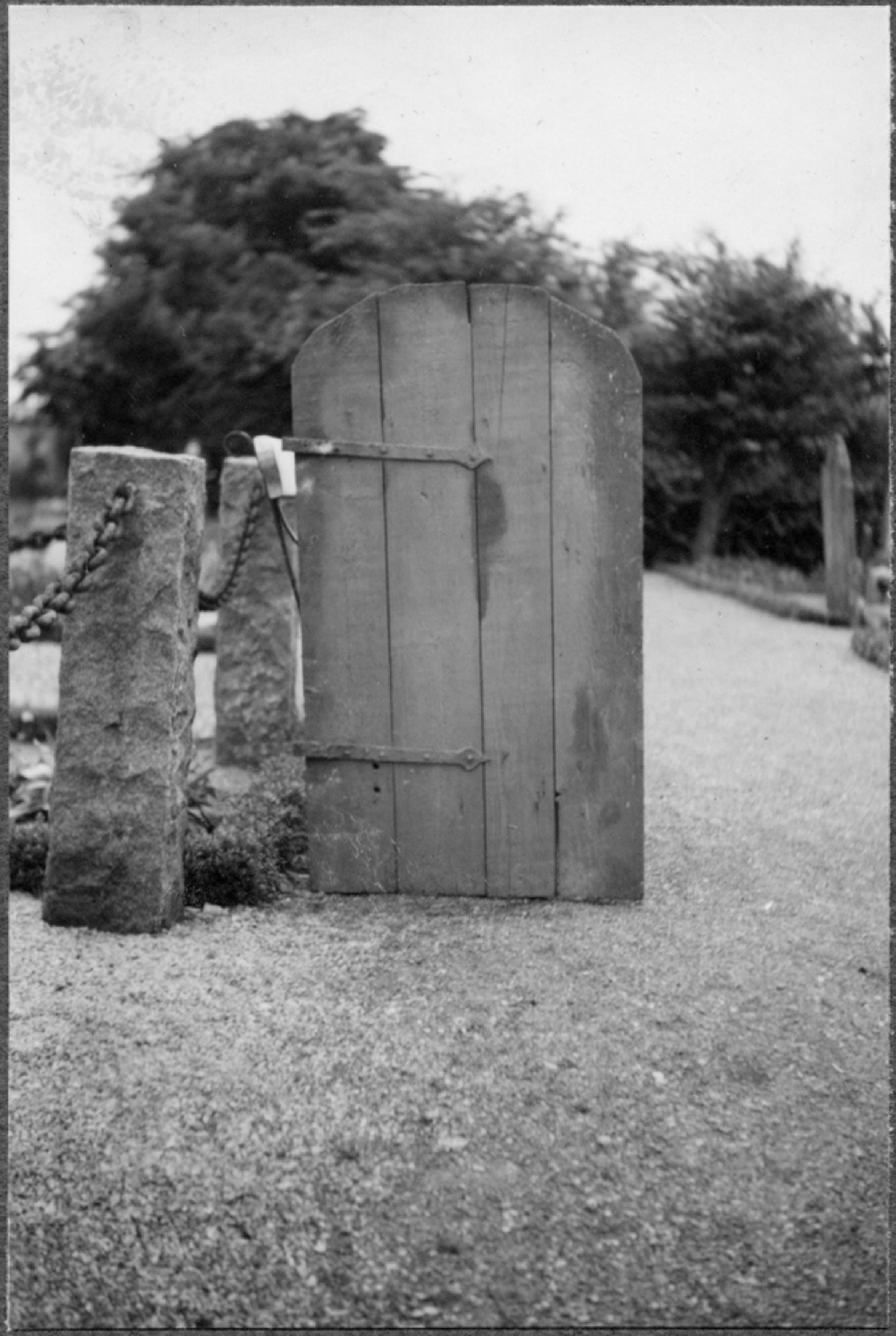 En av de gamla träluckorna i kyrkans medeltida torn.
