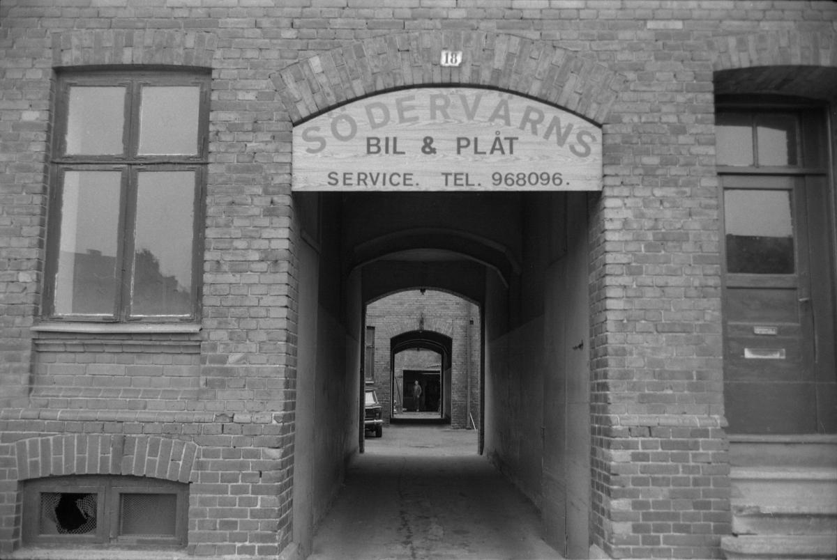 skylt, hus, bilverkstäder, skyltar, gårdsingång, bilverkstad, byggnader, dörr, byggnad, dörrar