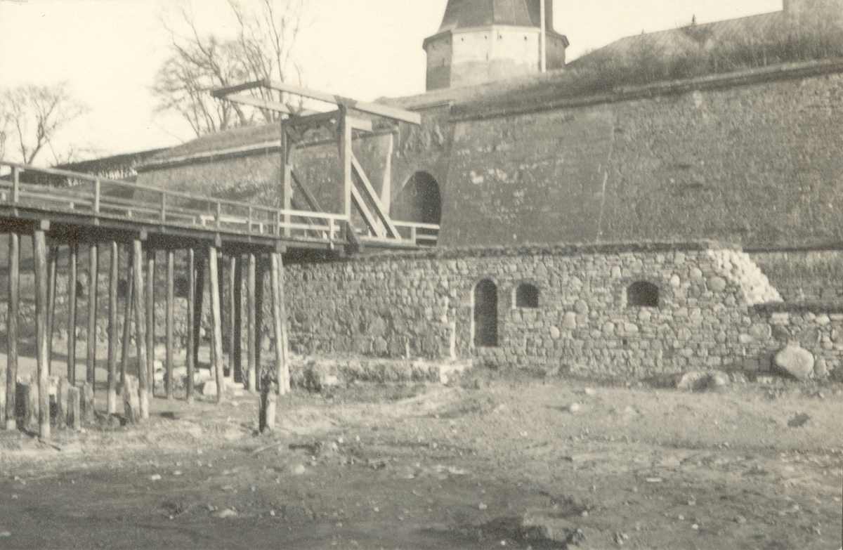 Vallgraven torrlagd under utgrävningarna på 1930-talet.