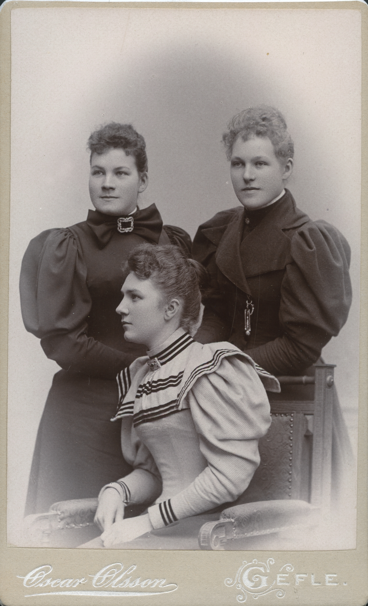 Porträtt av tre unga kvinnor. Gerda Broman, Anna P.son(Pettersson), Gertrud Nicklasson (enligt text i album).