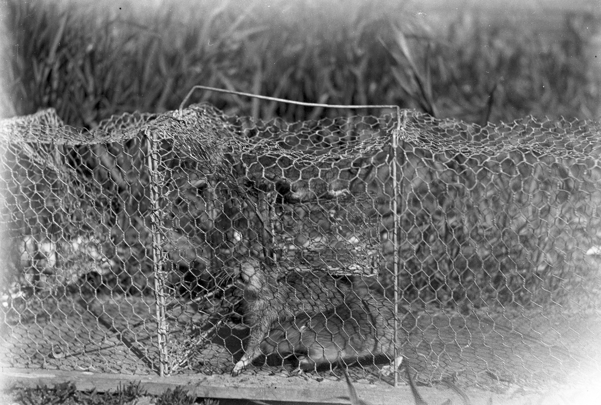 Två råttor fångde i en råttfälla.