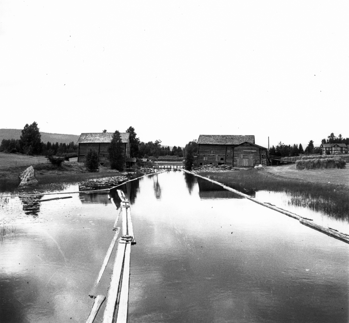 Vy över Iste, Arbrå socken, Bollnäs kommun. Tröskladorna på Petters och Västergården. Blomqvists till höger.