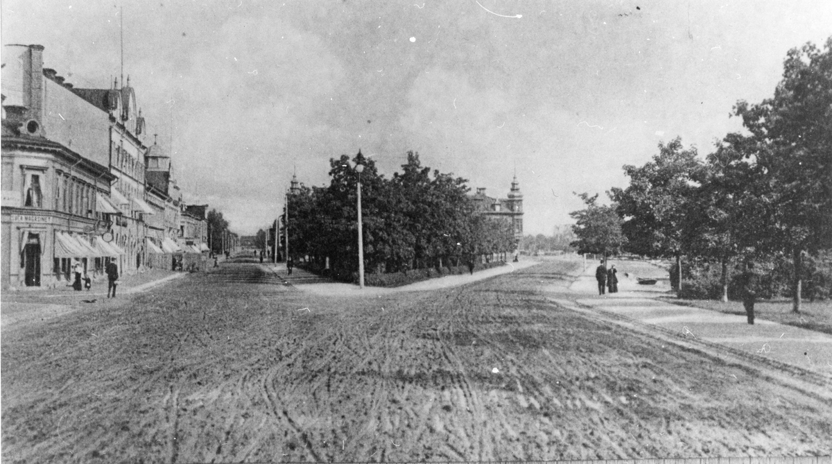Jerntorget i korsningen Köpmangatan-Norra Hamngatan. Foto omkring 1915 i Söderhamn.