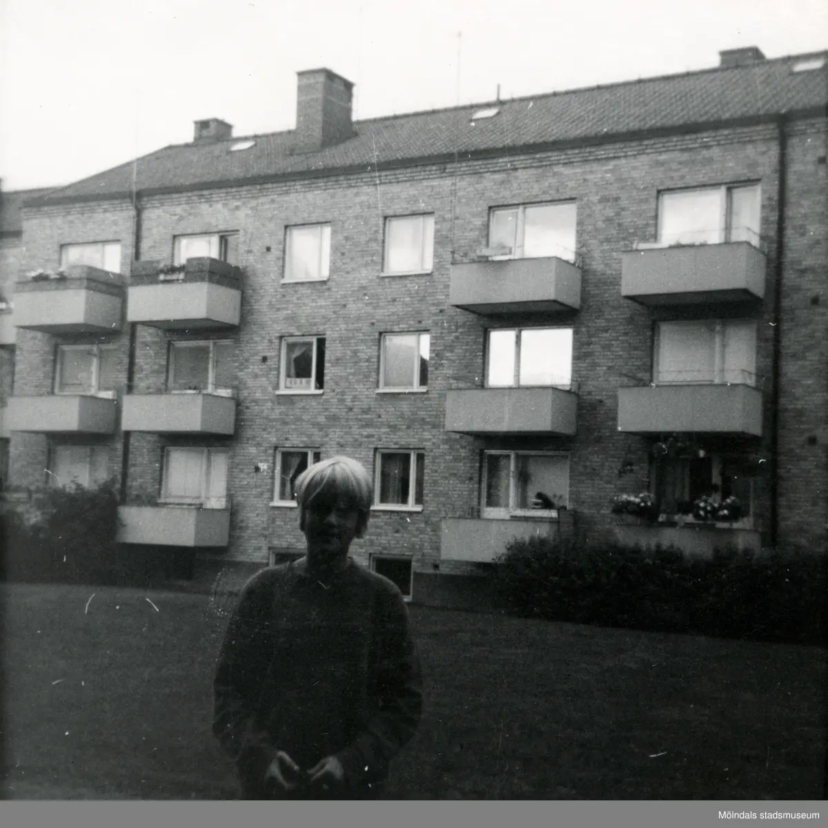 Porträtt av Ulla Nilsson, granne till Lennart Berndtsson. Tolsegårdsgatan i Bosgården, Mölndal, i mitten av 1960-talet.