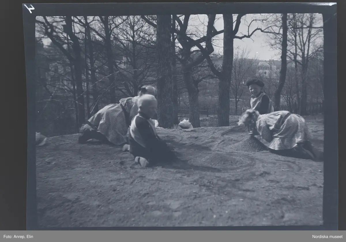 Barn leker i gruset utanför familjen Morthensens villa Solveden, Djursholm.