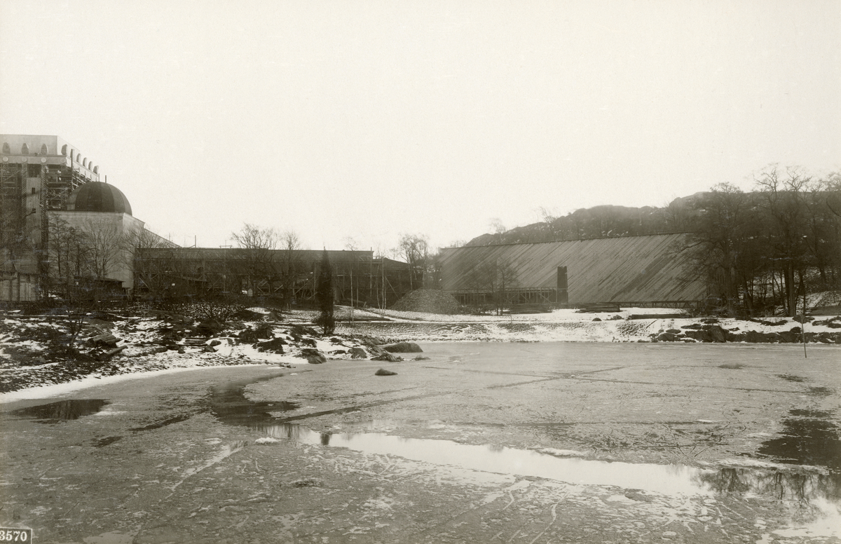 Näckrosdammen med Sjöfartsgården till vänster i bild och Konstindustrihallen till höger i bild