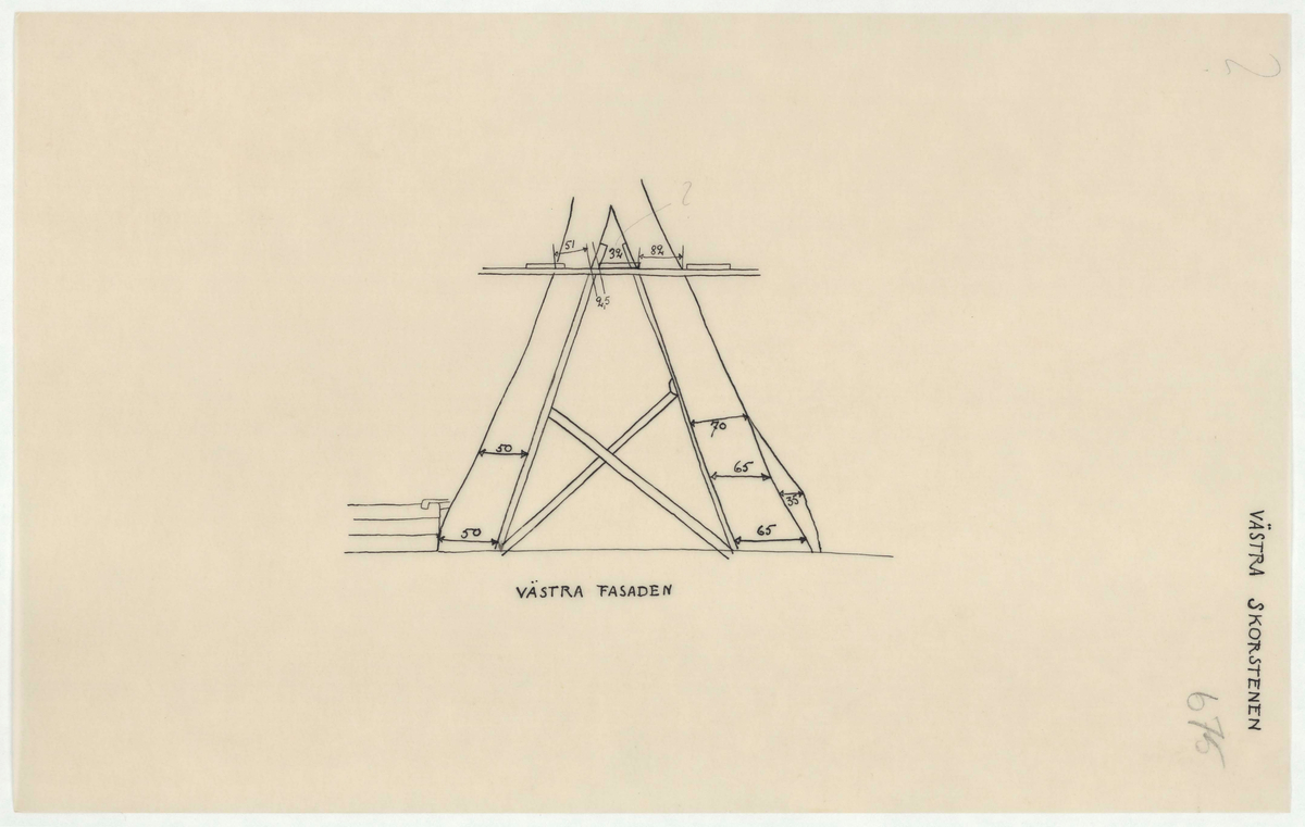 Titel: Skogaholms herrgård. Huvudbyggnaden. Detaljritning. VÄSTRA FASADEN. VÄSTRA SKORSTENEN.