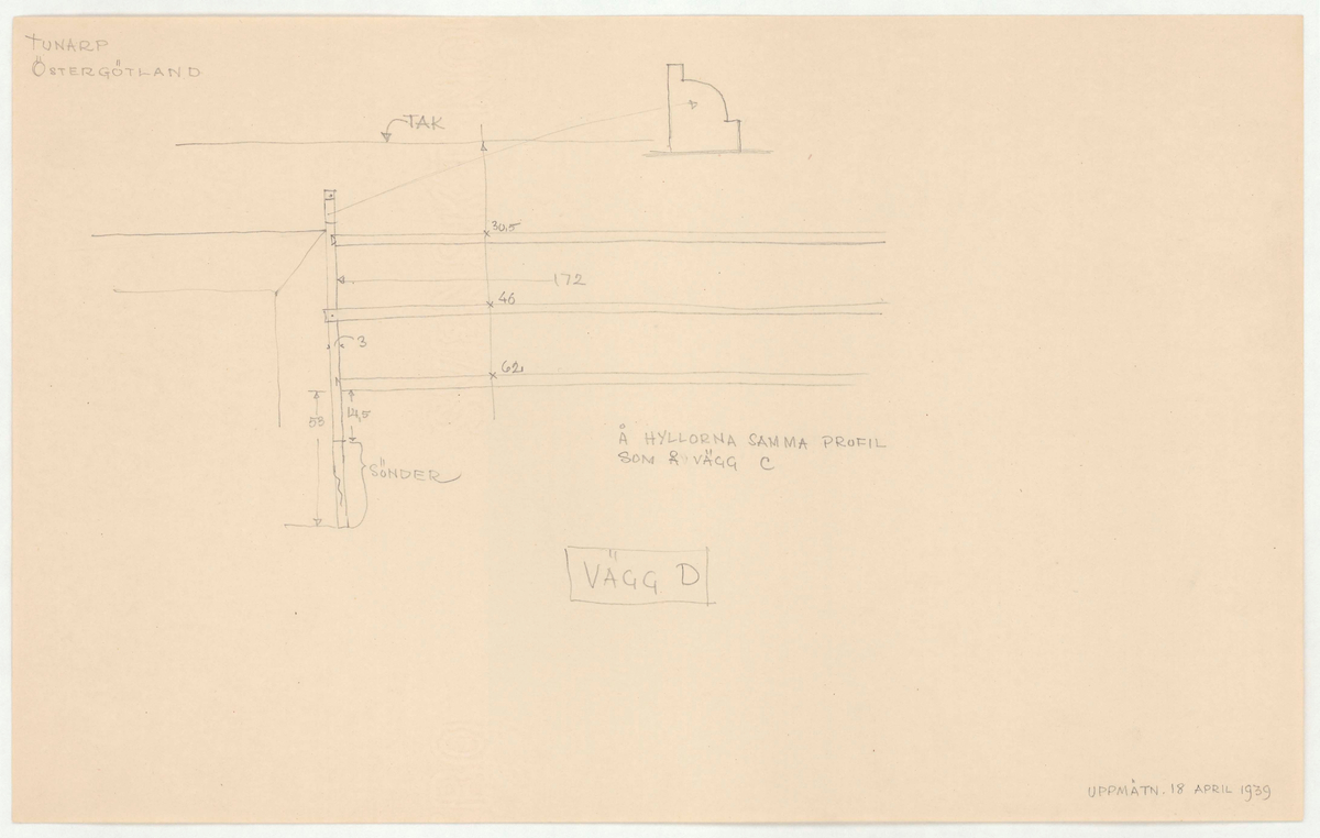 Titel: Skogaholms herrgård. Detaljritning. VÄGG D.