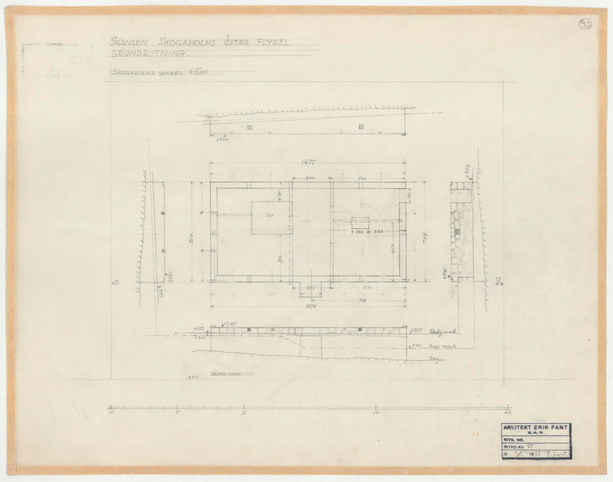 Titel: Skogaholms herrgård. Köksflygeln. Detaljritning/Planritning. GRUND.