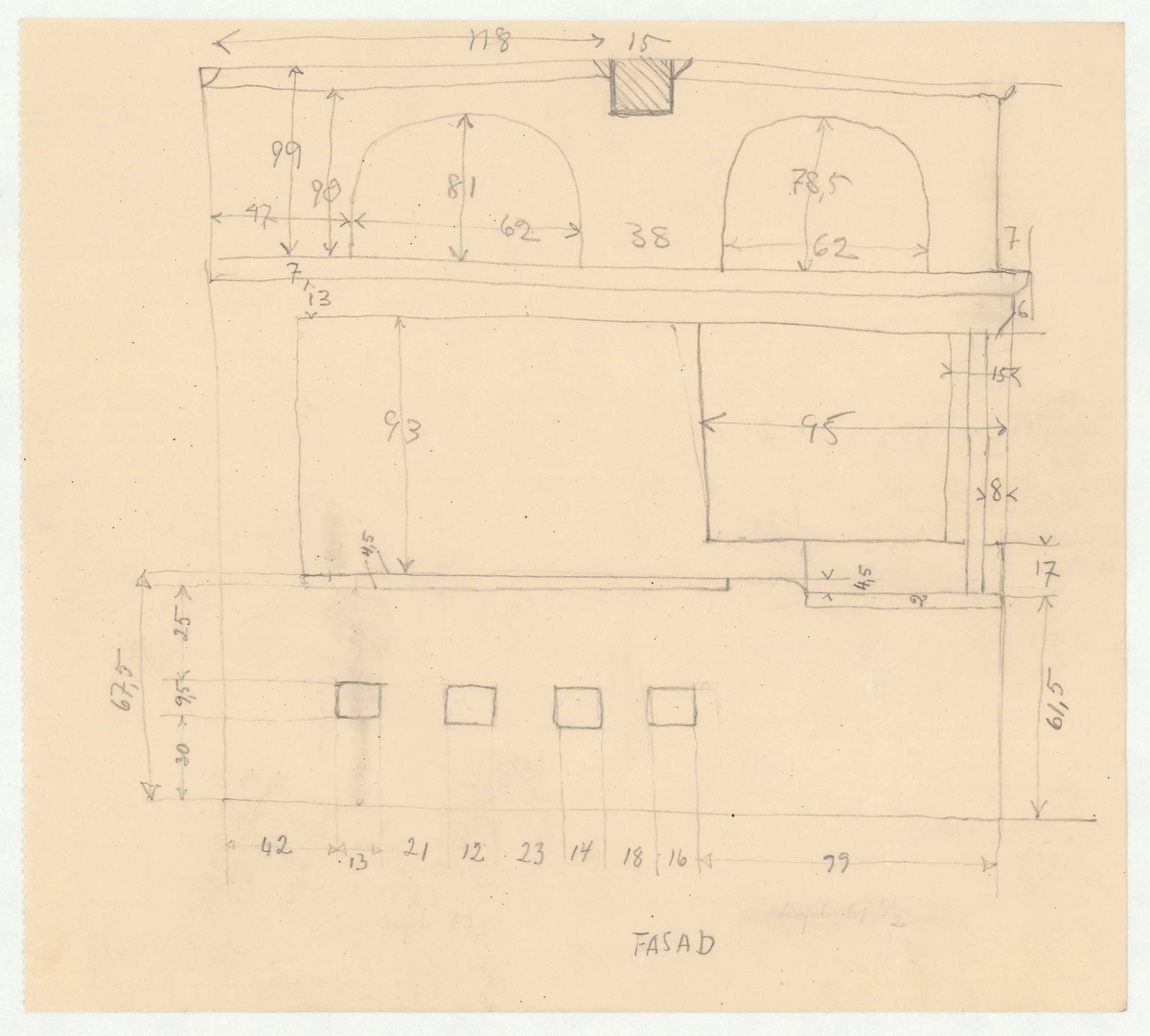 Titel: Skogaholms herrgård. Köksflygeln. Detaljritning. FASAD.