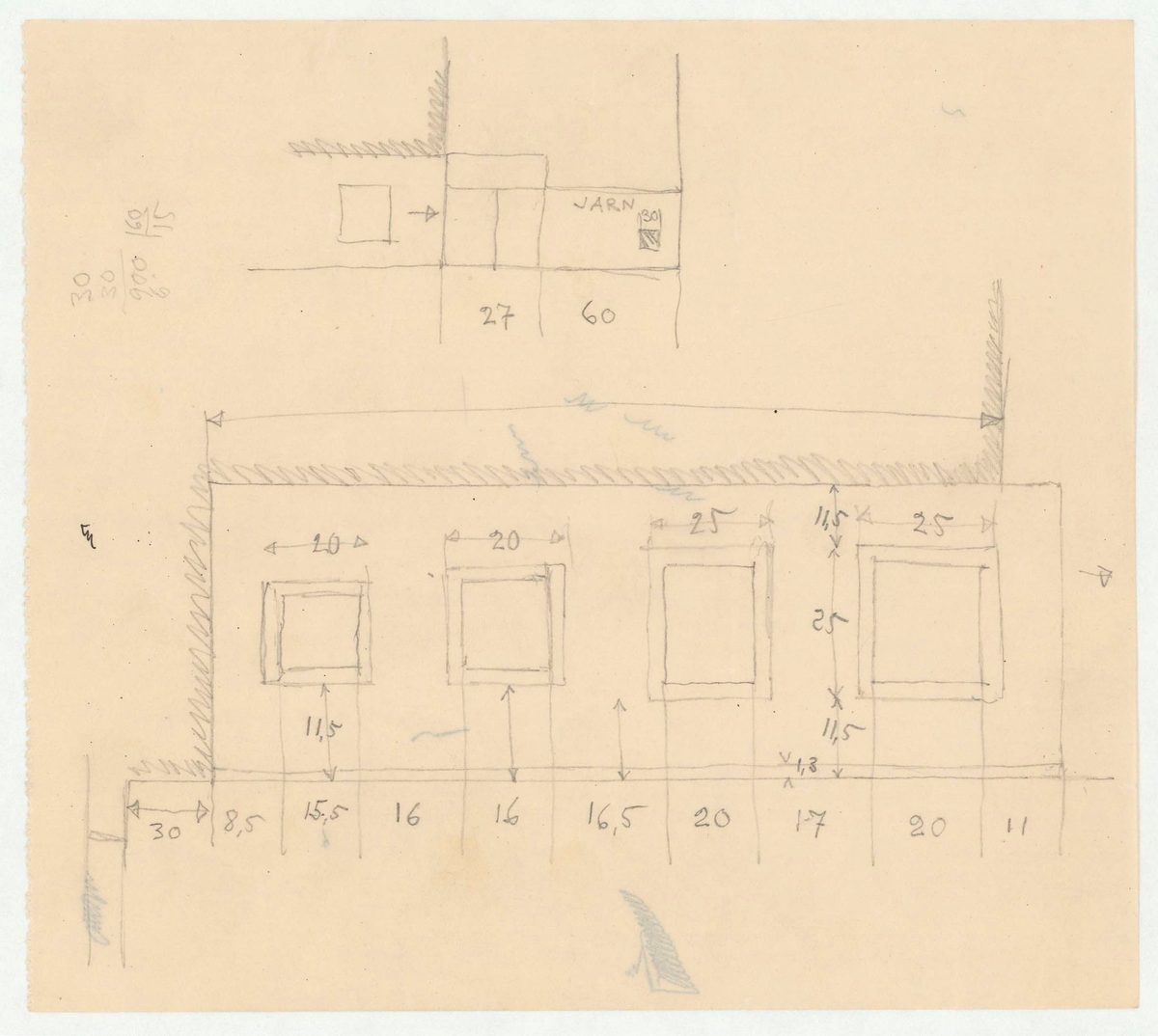 Titel: Skogaholms herrgård. Köksflygeln. Detaljritning.