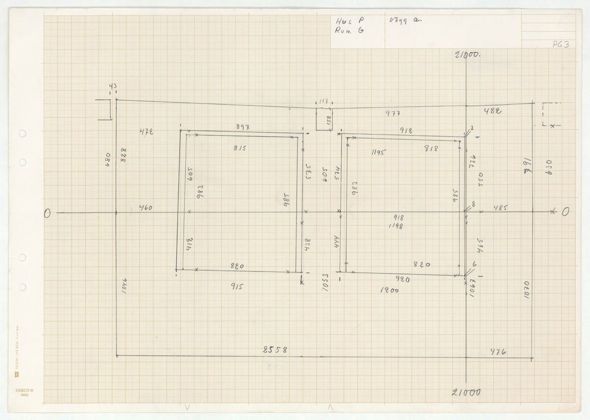 Titel: Skånegården. Bostadshuset. Detaljritning. Hus P. Rum G. Vägg a.