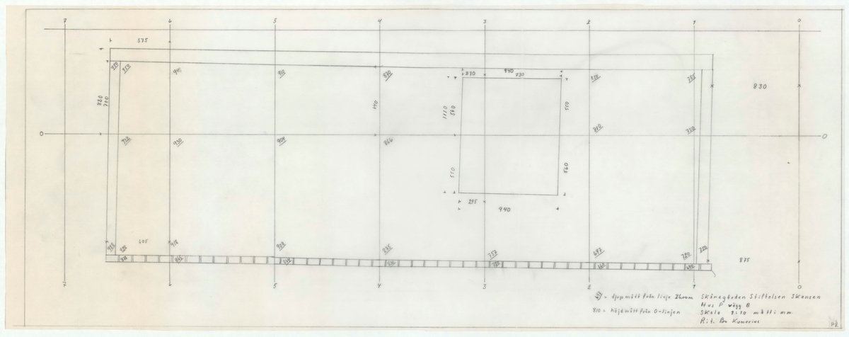 Titel: Skånegården. Bostadshuset. Hus P. Vägg B. Skala 1:10