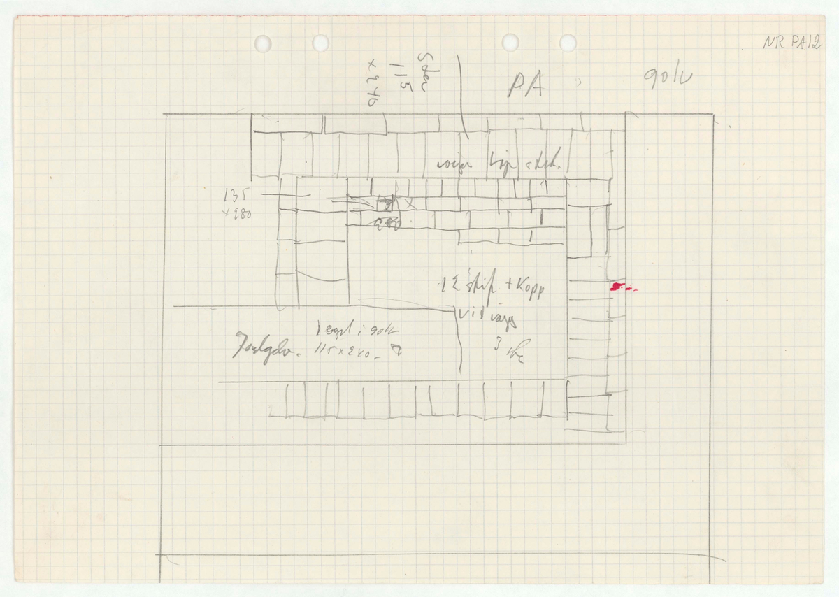 Titel: Skånegården. Bostadshuset. Ritning. PA. Golv.
