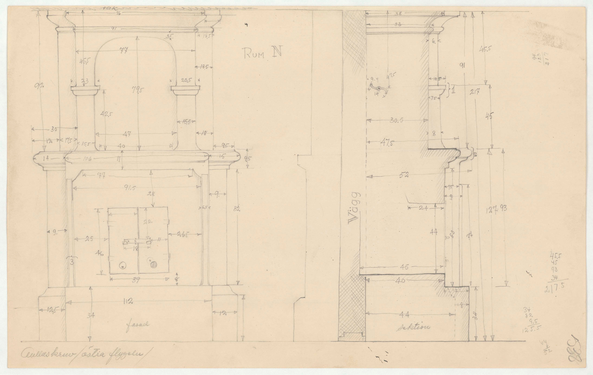 Titel: Skogaholms herrgård. Köksflygeln. Detaljritning. Gullaskruv/Östra flygeln. Rum N.