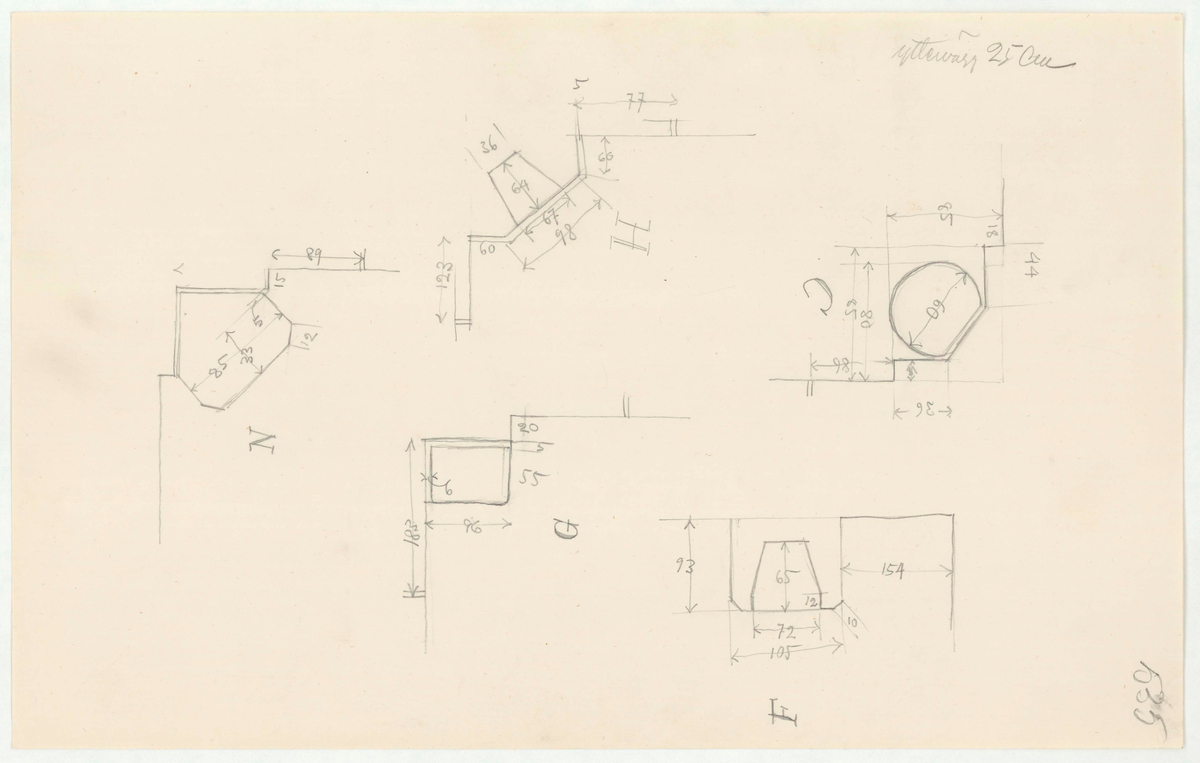 Titel: Skogaholms herrgård. Köksflygeln. Detaljritning. Yttervägg.