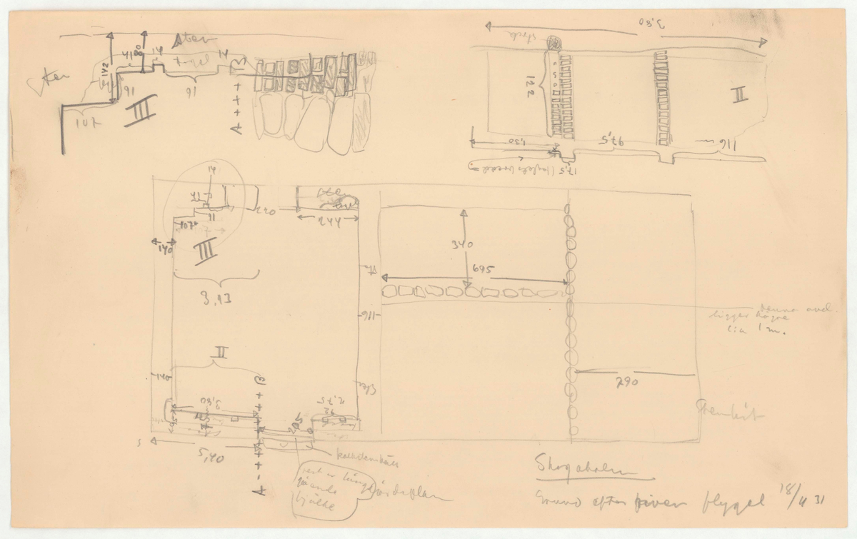 Titel: Skogaholms herrgård. Biblioteksflygeln. Detaljritning. Grund efter riven flygel.